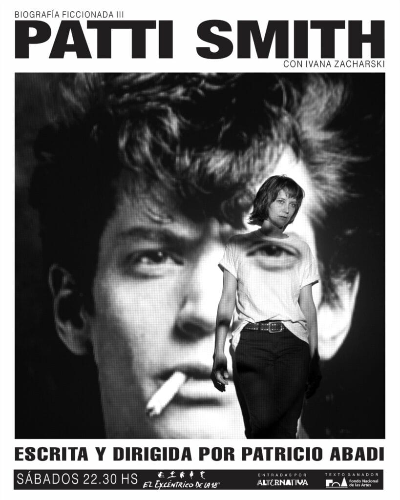 "Patti Smith", tercera entrega de la serie de biografías ficcionadas de Patricio Abadi, autor de "Caer y Levantarse" y co-autor de "El Equilibrista", puede asumirse, a la vez, como velorio performático y conferencia sobre el amor. La saga, que comenzó con Frida Kahlo y continuó con Bonus Track, se centra en la consagrada cantante, musa inspiradora e incesante creadora. El espectáculo, ganador del Fondo Nacional de las Artes, también formó parte del Festival de Teatro de Rafaela 2025.