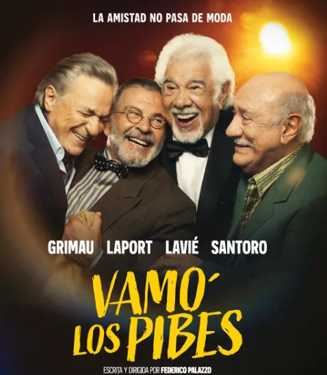 En plena calle Corrientes, "Vamo' los Pibes" irrumpe en la cartelera del Multiteatro como una celebración escénica de la amistad, del deseo de seguir vivos y de la obstinación por no resignar los sueños, aun cuando el calendario insiste en marcar el paso del tiempo. Inspirada libremente en "El Audífono" — texto del propio Federico Palazzo, quien además escribe y dirige — , la obra se apoya en una premisa tan sencilla como profundamente humana: un grupo de amigos de toda la vida decide unirse para ayudar a uno de ellos, un ex cantante que comienza a perder la audición y, con ello, la posibilidad de volver a hacer aquello que más ama. A partir de este gesto solidario, la trama amplía su horizonte y encuentra su verdadero motor: resistir la quietud, el aislamiento y las expectativas sociales que pesan sobre la vejez.